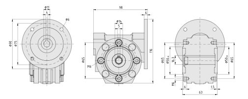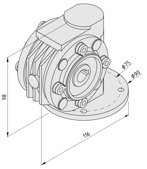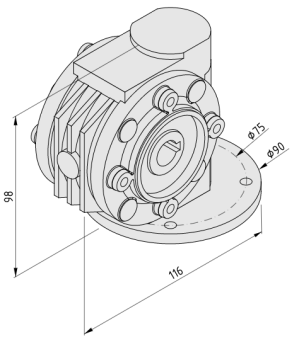 The D14/D11 right-angle gearboxes for the item AC D11 motor are available with six different ratios. The speed of the conveyor belt is therefore adjustable. As a ready-to-connect solution, the gearbox is screwed onto the motor without any machining. The motor attachment kit 8 40 D14 is used to attach gearboxes and motors to the right or left of the conveyor.