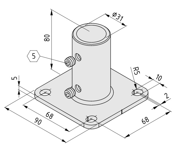 Flange D30 90x90-80, galvanized steel