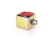 Simplified construction electromagnet with one-way action, perfect for low speeds. The moving core keeps the activated position as long as the coil is energized. It becomes free again as soon as the coil is no longer supplied. Then, the return to the original position is generally obtained by a return spring. This spring is integrated into the electromagnet or the controlled mechanism.