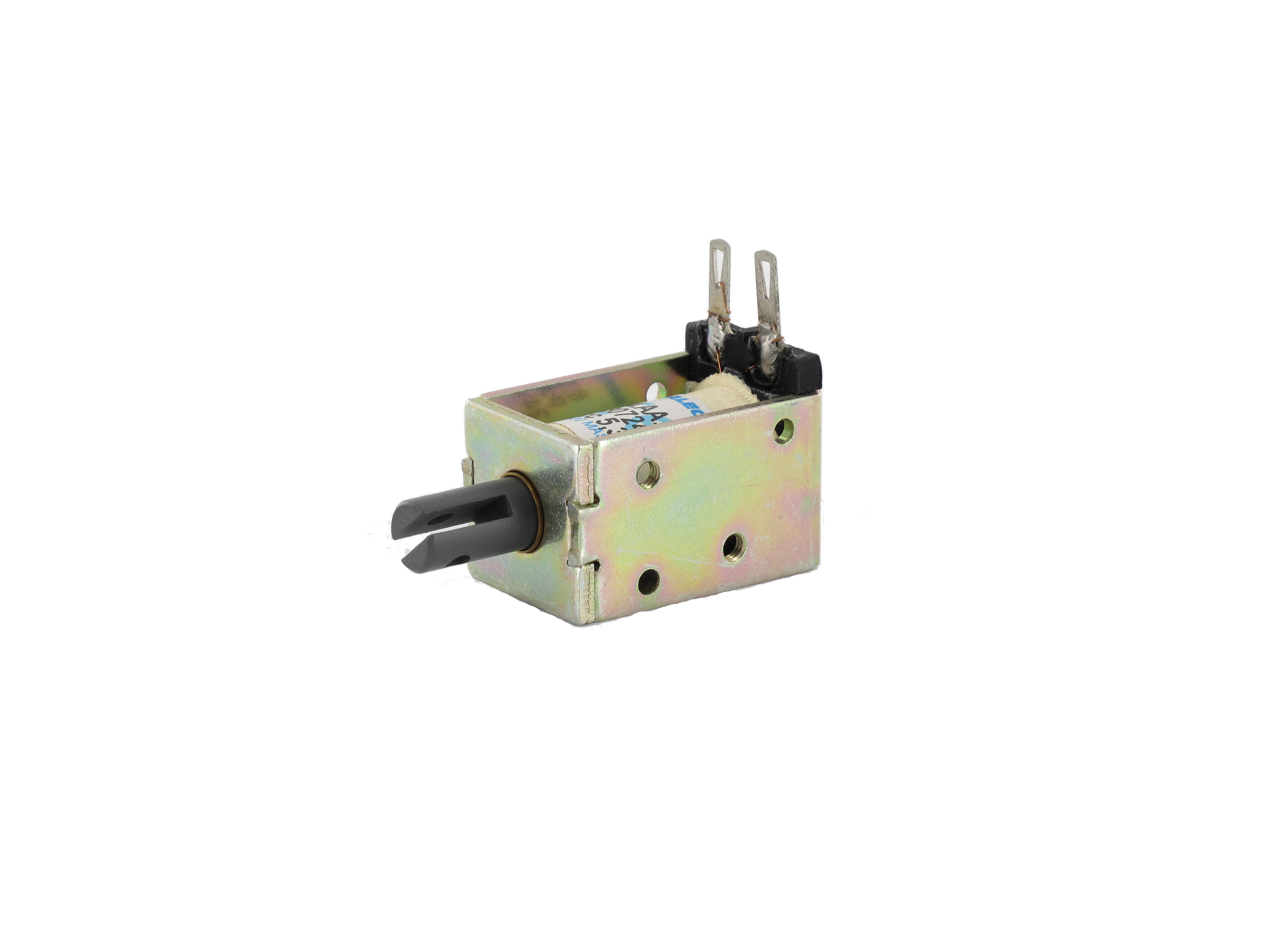 Simplified construction electromagnet with one-way action, perfect for low speeds. The moving core keeps the activated position as long as the coil is energized. It becomes free again as soon as the coil is no longer supplied. Then, the return to the original position is generally obtained by a return spring. This spring is integrated into the electromagnet or the controlled mechanism.