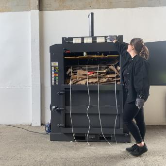 The V135E Auto baler is one of our waste compactors that meet a medium need for compacting cardboard waste, plastic films.