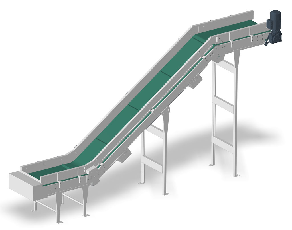 Maximum load: 50 Kg/ml - Type of belt: Endless vulcanized belt or Smooth belt on the lower part or Gripping belt on the inclined part + upper part - Speed: 8 to 30 m/min - Maximum inclination: 25°