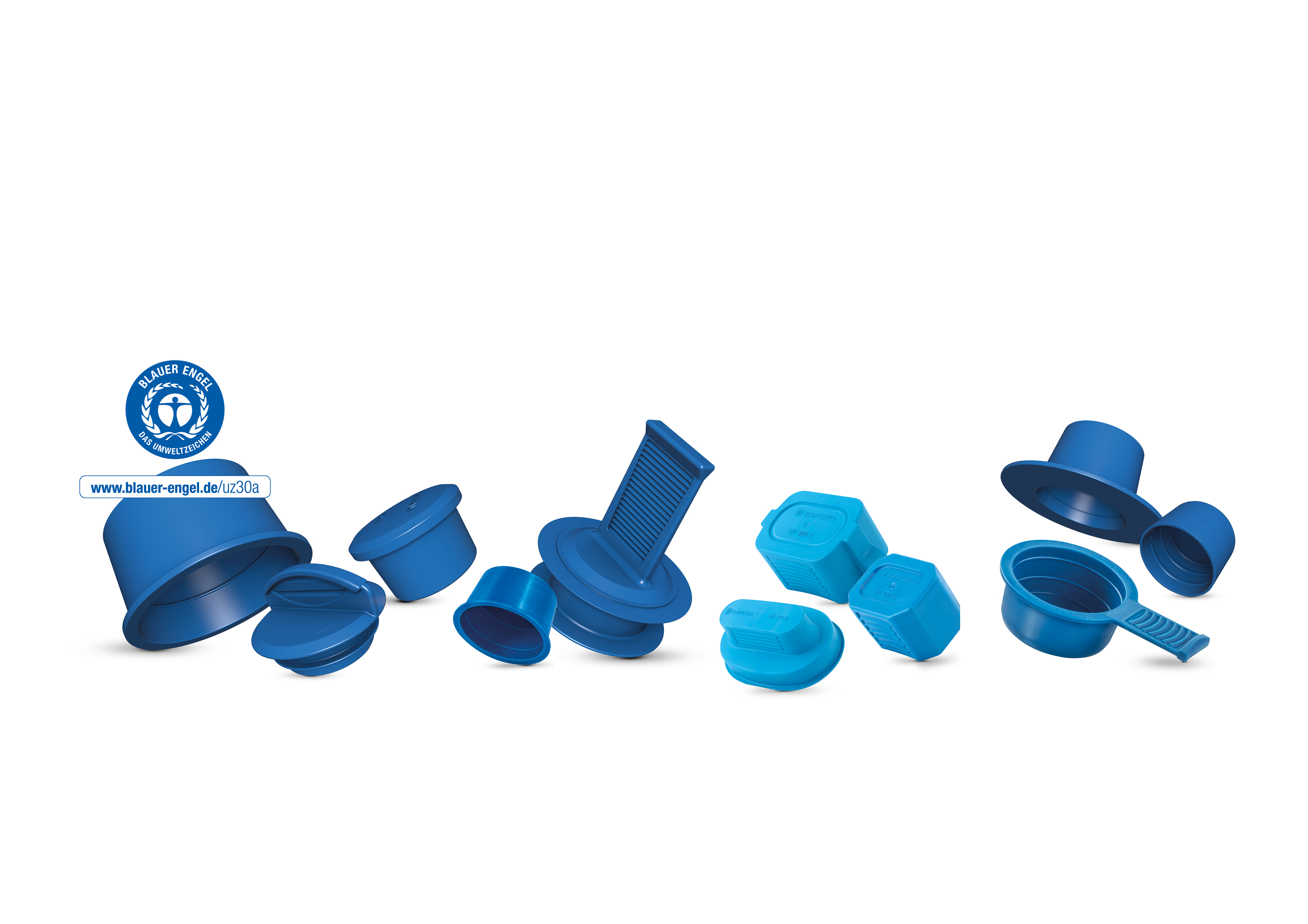 Plastic plugs and caps made from 100% post-consumer recycled material for the protection of internal or external threads, tubes, connectors, hydraulic lines or connectors.
