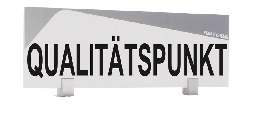 "POINT QUALITÉ" design strip W 600 x H 170 mm with fixing bracket (German)