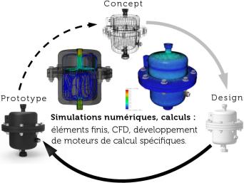 Tools and techniques : finite elements analysis (FEA), computational fluid dynamics (CFD), specifics calculation engines.
