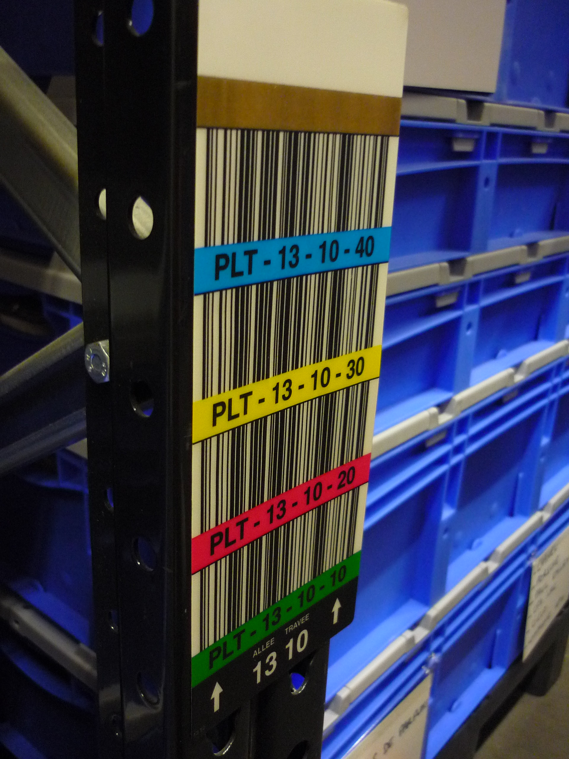 - Bandeaux palettiers équipés de code-barres inclinés pour une lecture sans faille.