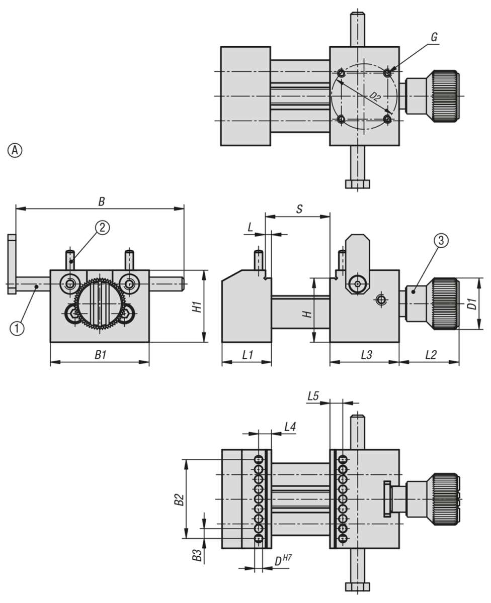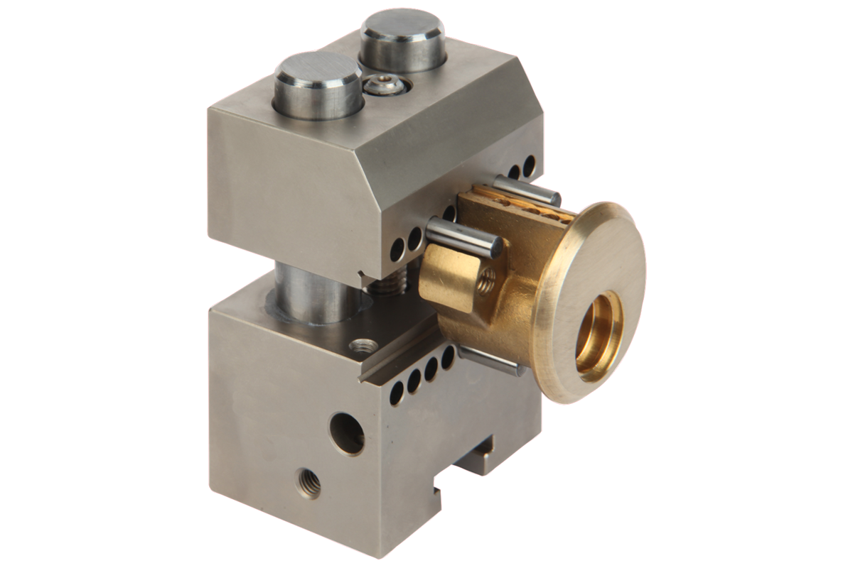 L’étau de précision est une solution flexible permettant de positionner et de fixer facilement et rapidement des pièces pour les mesurer sur des machines de mesure. Le serrage peut être réalisé au moyen de mors déportés ou de broches enfichables dans les mors. Il est ainsi également possible de serrer des pièces avec alésage intérieur. Les colonnes de guidage interchangeables permettent d’accroître la portée de 35 mm à 75 mm.