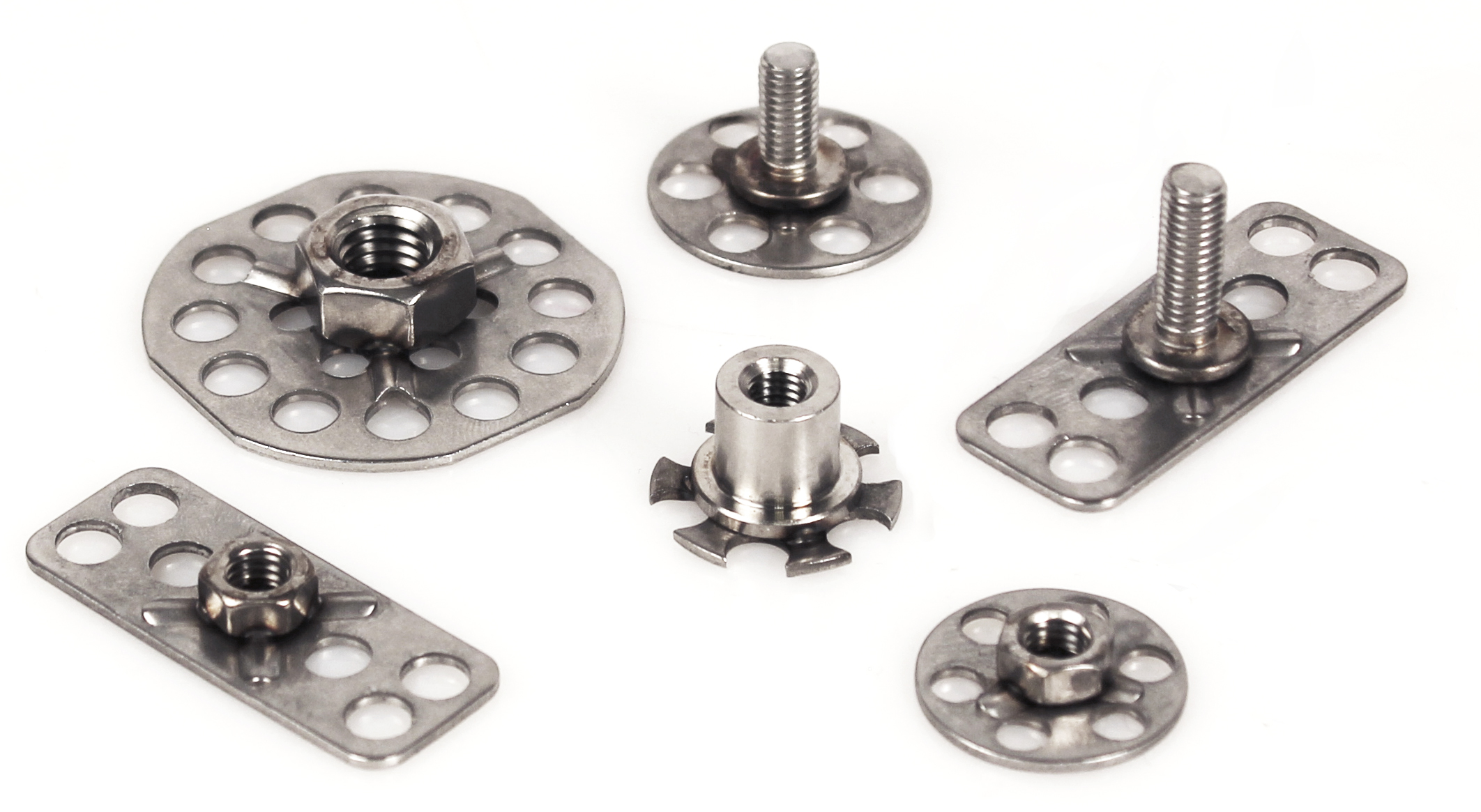 Engrenages HPC propose à son catalogue les inserts à coller Master-Plate®. Ce sont des éléments simples pouvant se coller sur tous types de matériaux sans préparation particulière, permettant par la suite un assemblage vissé. Un insert Master-Plate® est constitué d’une base rectangulaire, carrée ou cylindrique et d’un écrou, un insert taraudé ou une tige filetée en inox 316L. La grande variété de formes offre aux techniciens et aux designers de multiples solutions à leurs problèmes de fixation. Ces inserts peuvent répondre à des besoins variés dans de nombreux domaines : Automobile, ferroviaire, industrie nautique, transport, ameublement, construction...