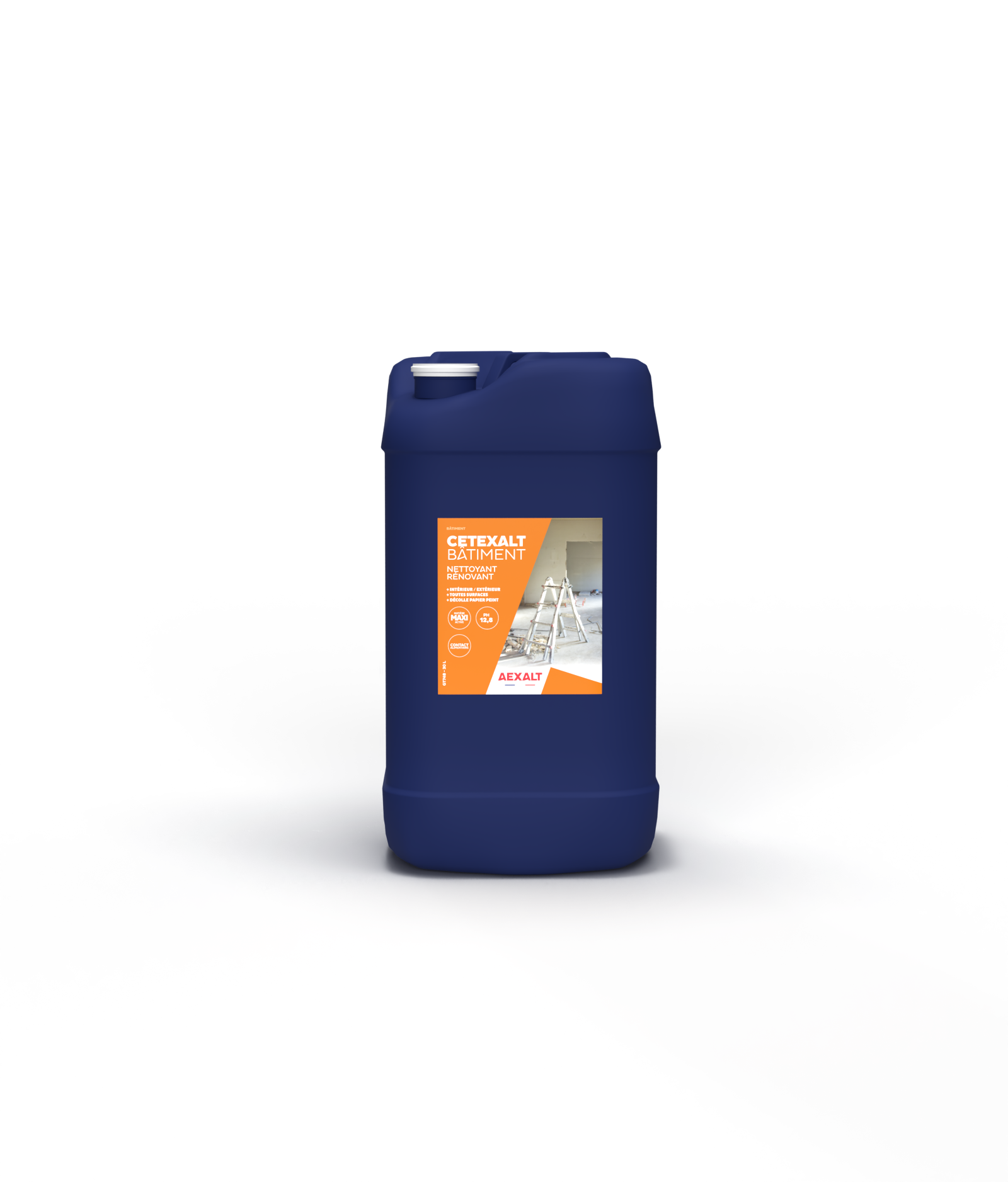 Nettoyant rénovant professionnel spécial gros travaux (intérieur / extérieur) : sols, murs et toutes surfaces lavables (préparation avant peinture, fin de chantiers, décollage du papier peint...). Compatible nettoyeur HP et autolaveuse.