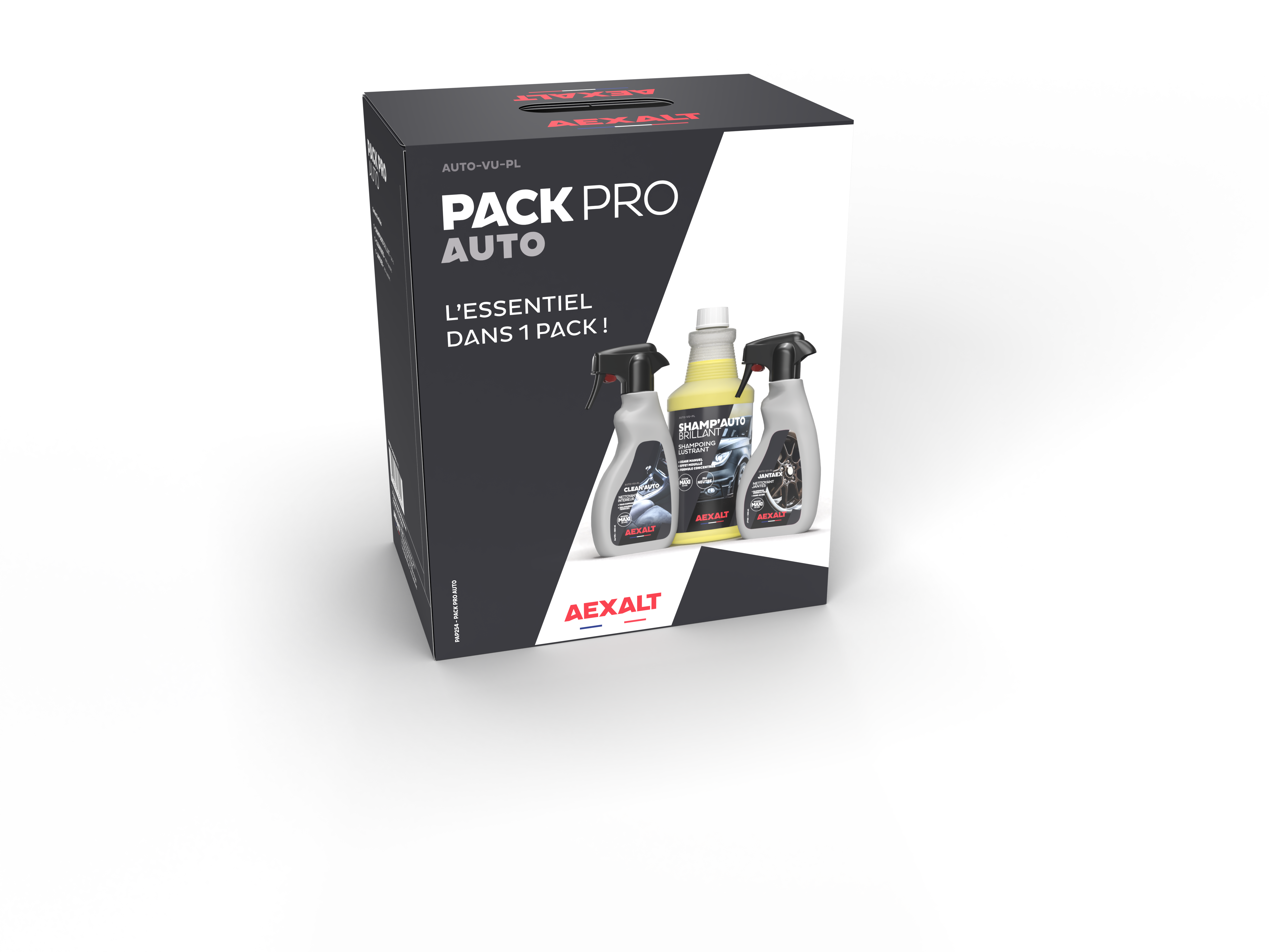 Composé de : 1 nettoyant intérieur CLEAN'AUTO 500 ml - ACR175. 1 nettoyant jantes JANTAEX 500ml - JT150. 1 Shampoing carrosserie SHAMP'AUTO BRILLANT 1L - S140