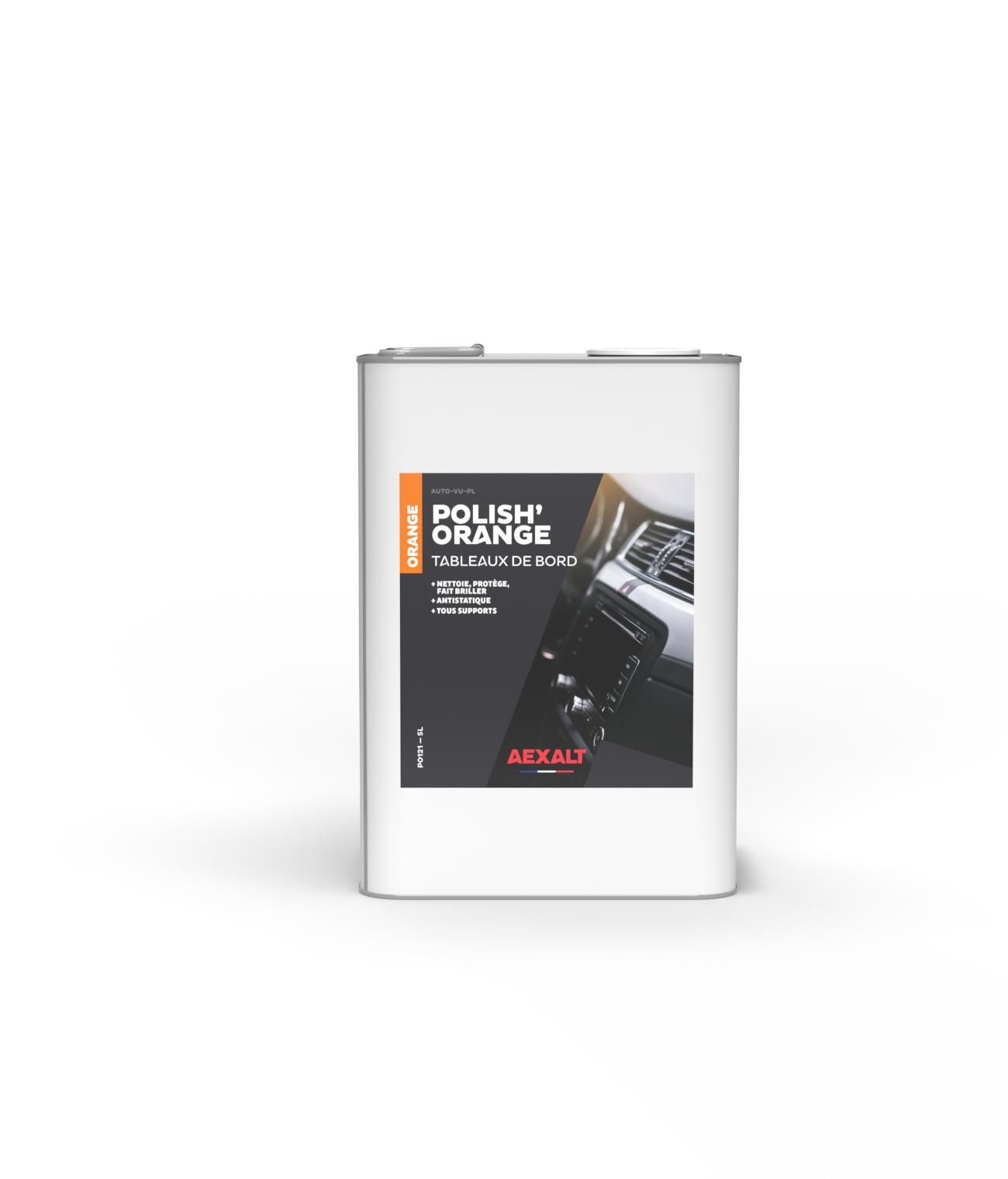 Polish Rénovateur tableaux de bord. Entretien, protège et fait briller tous les supports : skaï, tableaux de bord, cuirs… Très haut brillant. Effet immédiat. Parfum orange