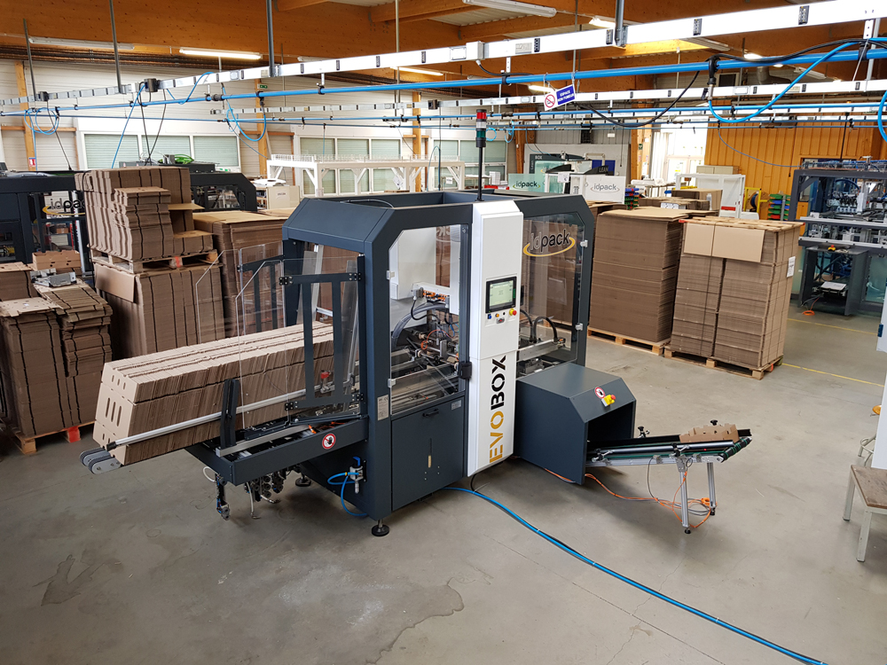 Nouvelle formeuse de caisses ergonomique, évolutive, intuitive avec une connectivité 4.0 : la formeuse de caisse connectée EVOBOX offre une cadence élevée et des produits parfaitement exécutés pour un coût de maintenance réduit.