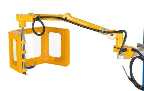 Le bras en deux parties permet d'ajuster la hauteur et la profondeur de la protection à votre position de travail.