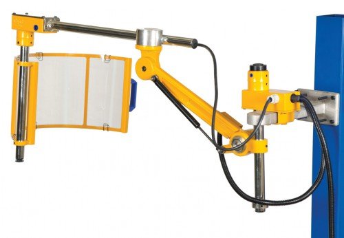 Le bras en deux parties permet d'ajuster la hauteur et la profondeur de la protection à votre position de travail.