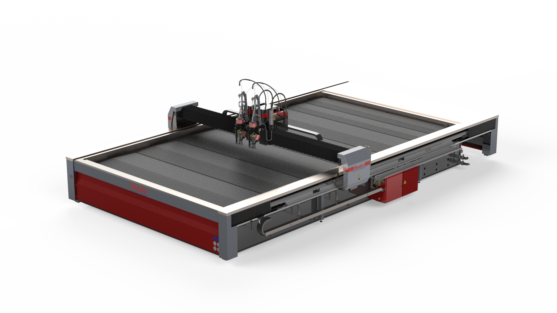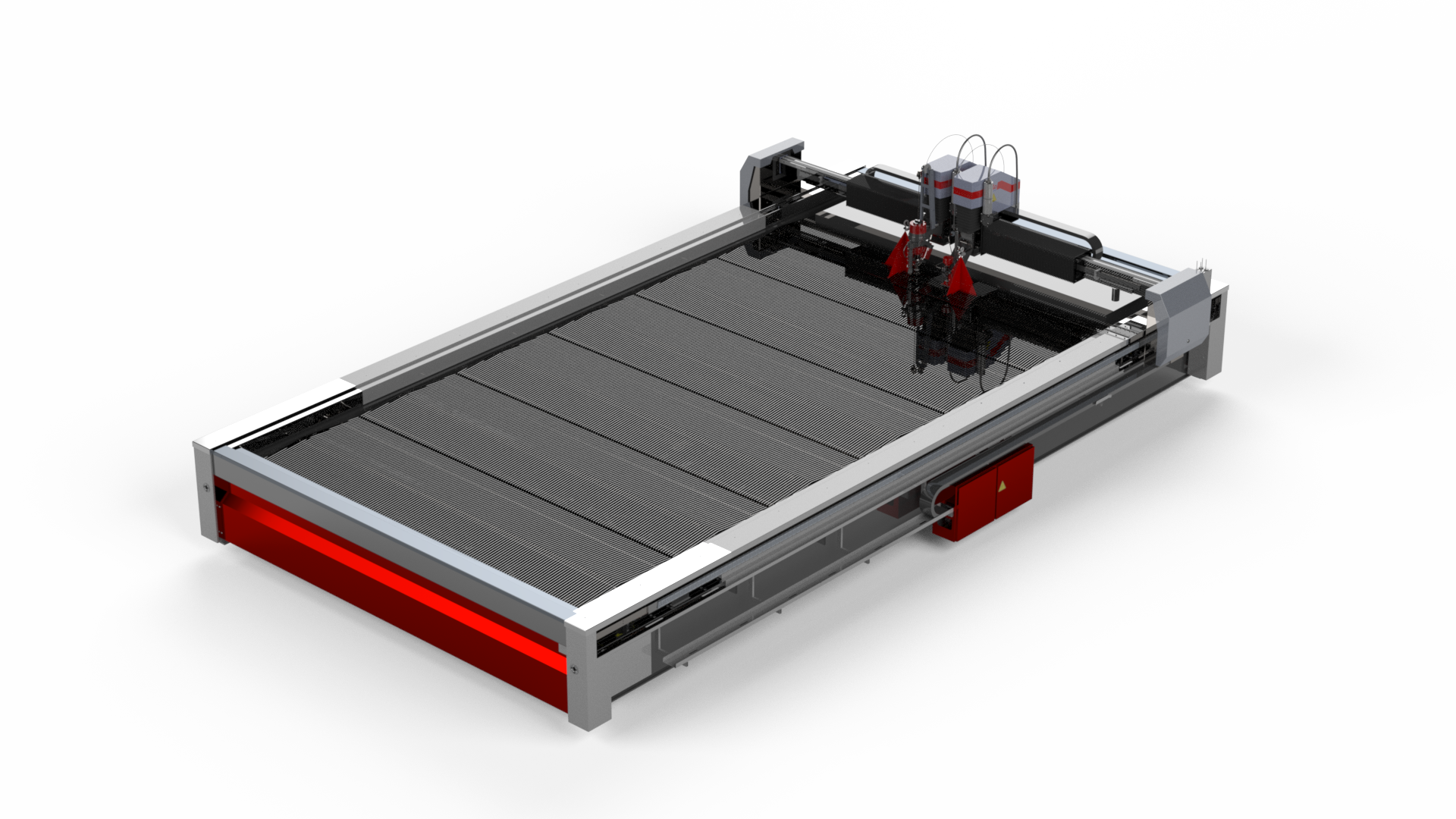 La base d’une machine de découpe au jet d’eau est la table. Une table robuste assure la stabilité lors de la découpe de matériaux. La table de découpe comprend le pont qui déplace la tête de découpe sur ses axes X-Y. Différentes technologies d’entraînement sont disponibles. Pour nos machines de découpe au jet d’eau, nous avons choisi la technologie d’entraînement linéaire pour assurer durablement la précision et réduire les coûts de maintenance. Une large gamme de tables de découpe nous permet de proposer un système de découpe adapté à resque toutes les situations.