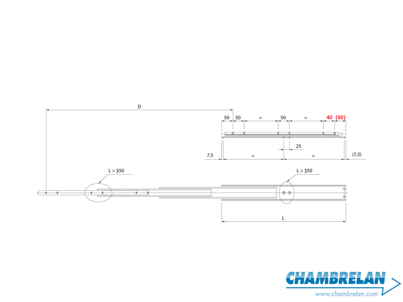 RA554M - Glissière télescopique à Super-Extension en Acier