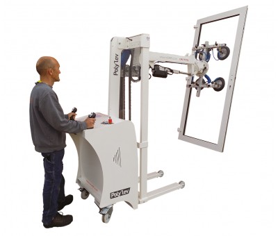 Equipement à énergie autonome, ce chariot de levage facilite la manipulation de produits : Vitrage, porte, panneau de bois...