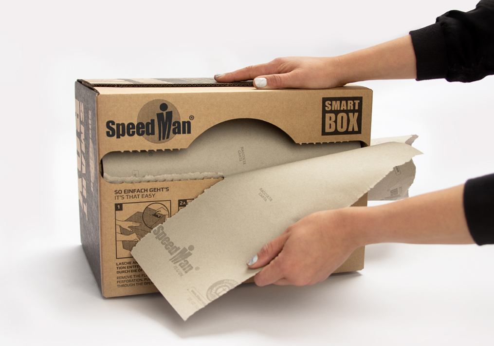 La SpeedMan SMART BOX répond à plusieurs besoins : combler le vide, envelopper des produits sensibles ou en tant que protection intercalaire.