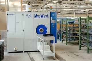 LES MACHINES MECWASH fonctionnent avec des produits à base de lessive et sont équipées d'une chambre de lavage à un seul OU PLUSIEURS panier. Le panier de lavage/porte-pièces dispose de l'option de rotation, oscillation, statique à l'intérieur de la chambre de lavage à CHOISIR PAR PROGRAMMATION. Afin d'optimiser le traitement des pièces à dégraisser un bain de lavage et de rinçage son t au minimum nécessaire. Les bains de lavage et rinçage sont indépendants et permettent l'optimisation du nettoyage afin de garantir de bon résultat de lavage. Les qualités de dégraissage sur les pièces sont obtenue par la rotation ou le basculement du panier, conjugué et renforcé par l'effet d'une circulation du liquide et celui d'un dispositif à ultra sons et éventuellement compléter par une aspersion. Le séchage peut être effectué par air chaud ou sous vide. Les installations à solutions aqueuses avec produit lessiviel sont indiquées pour laver les composants métalliques (laiton, acier, aluminium, zamak, cuivre, etc...) aux formes et dimensions différentes, contaminées par des huiles entières et émulsionnées, des pâtes à polir, des sables de moulage ou des copeaux. Pour tous composants à traiter (matière première, produit semi-fini ou produit fini), L'équipement de lavage propose le cycle le plus approprié: à partir du simple dégraissage au lavage le plus soigné, du nettoyage et élimination des substances contaminées sur surfaces planes à l'élimination des résidus dans les cavités ou trous borgnes, pour garantir ainsi dans toute circonstance le niveau de nettoyage et le temps de séchage nécessaire. Il est aussi possible de faire des bains additionnels utilisant des additifs passivant. Les équipements de nettoyage lessiviel peuvent être un moyen dans certain cas de se substituer aux machines solvants. Les machines travaillent en aspersion ou en aspersion et immersion (au choix, suivant le programme retenu).