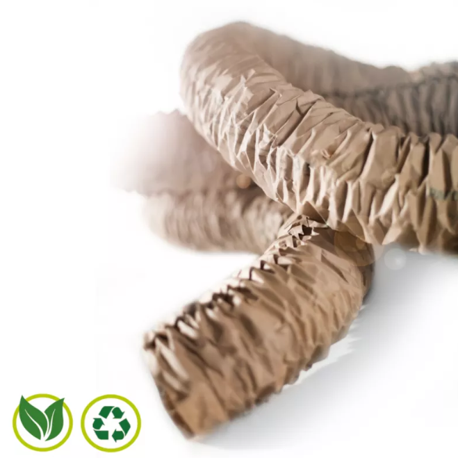 Remplissage maximal avec moins de matériau. Format tubes de papier froissé. Absorption des chocs exceptionnelle. Flexible, malléable et facile à séparer grâce aux perforations.