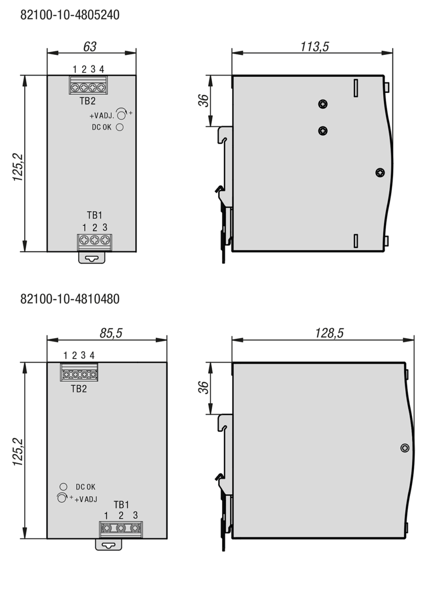 Version fermée avec bornes à vis protégées contre les contacts accidentels. Protection contre les surcharges par limitation de courant, récupération automatique. Protection contre les courts-circuits, les surcharges et les surtensions. Affichage LED pour l'allumage. Pour montage sur rail symétrique DIN.