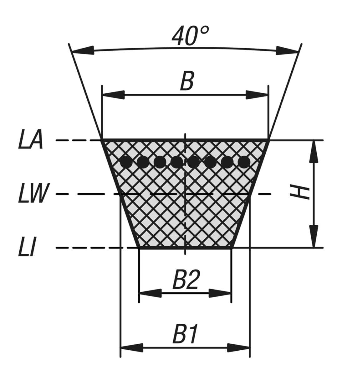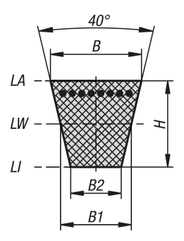 Les courroies trapézoïdales norelem sont toutes dotées d’une section en V,