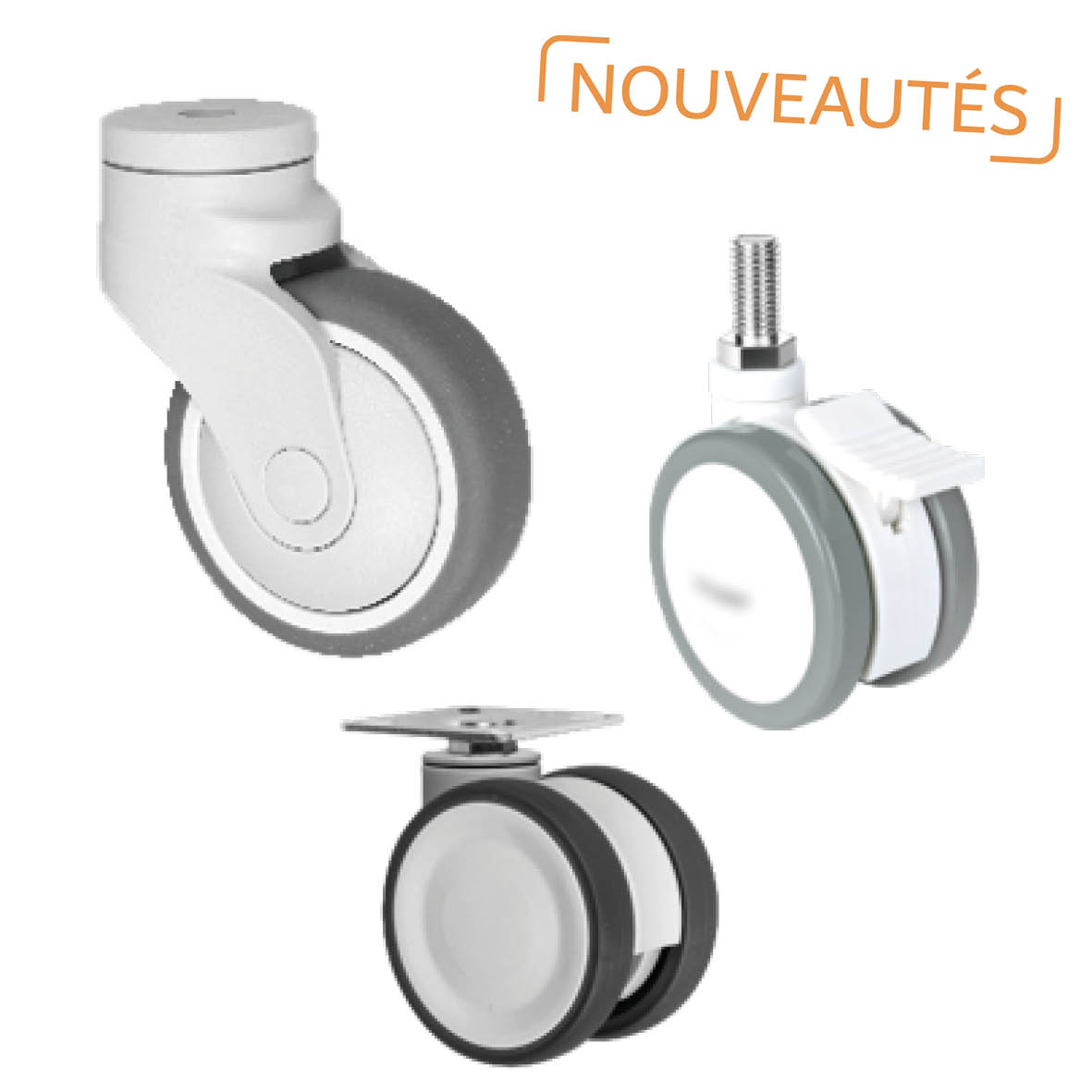 3 nouvelles familles de roulettes de collectivités pour mobiliers & appareils, matériels de cuisine, alimentaires, hospitaliers, ... suivant norme EN 12530.