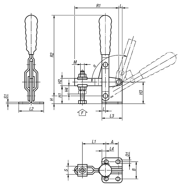 Poignée plastique résistante à l'huile.Nota :Accessoires, voir 05200 – 05280