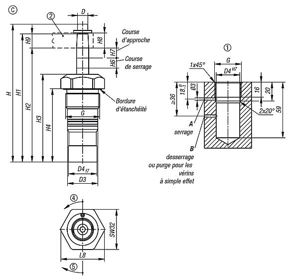 - Accès sans collision à la pièce à usiner.Sur demande :Courses et diamètres de piston plus importants, autres angles de pivotement, différents supports de bras de serrage, avec contrôle de la position en option.Accessoires :Bras de serrage pour vérin de bridage pivotant compact 04368-10.Contenu de la livraison- 1 écrou à encoche M27x1,5 (uniquement pour les vérins de bridage pivotants compacts 04368-14081104190100, 04368-14081104190200, 04368-14062104190100, 04368-14062104190200).