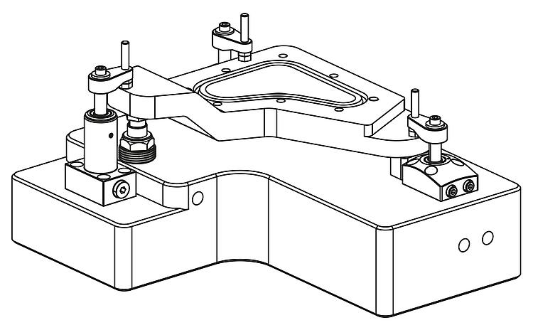 La pression de service admissible des vérins de bridage pivotants dépend de la longueur des bras de serrage.
