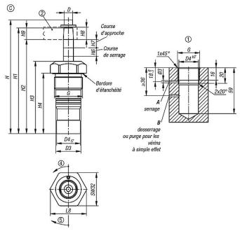 En fonction du raccord de ventilation, le filtre fritté des vérins de bridage pivotants à simple effet doit être remplacé par un bouchon fileté.