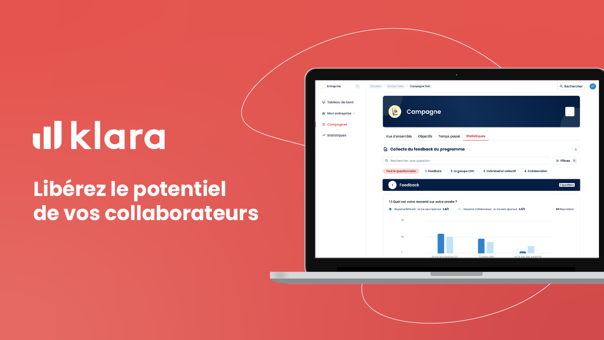 Klara est la solution SaaS pour rendre vos collaborateurs acteurs de leur développement.Complète et intuitive, la plateforme digitale facilite et optimise le suivi du développement collaborateur sur le terrain.En un coup d’oeil : mesurez l’impact de vos formations sur le terrain, pilotez vos objectifs de formation, évaluez-les via des questionna...