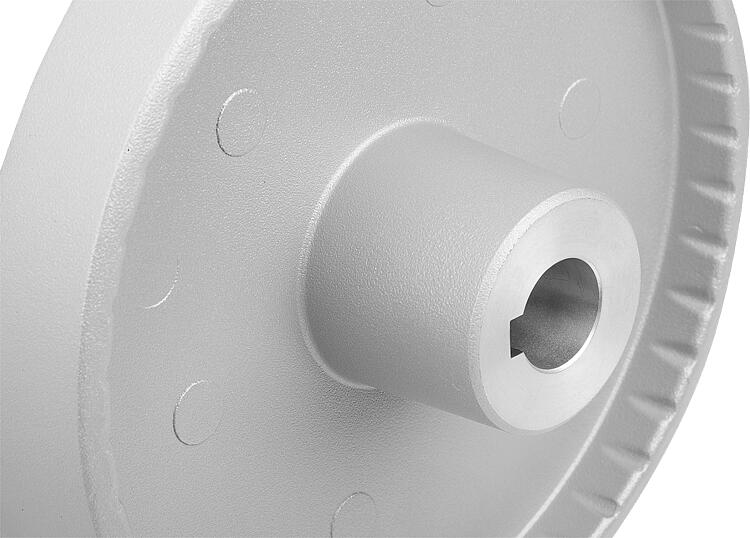 Avec alésage d'ajustement, rainure de clavette et alésage transversal.Nota :Concentricité et planéité de la jante ≤ 0,4 mm.Accessoires :07375 Rondelle.