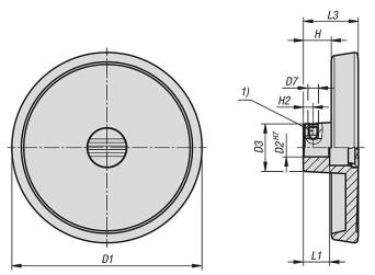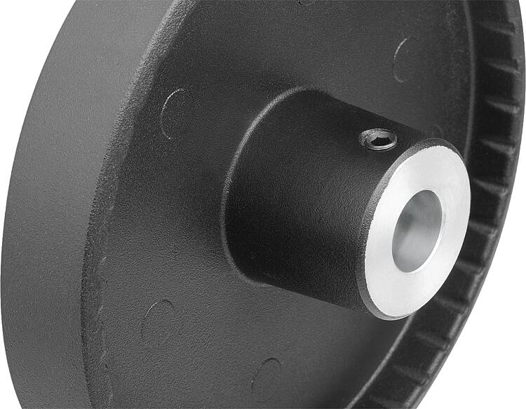 Les volants se fixent suivant le sens axial sur l’arbre soit à l’aide d'une goupille transversale, soit à l'aide d'une vis CHC DIN 6912 et d'une rondelle d'appui 07375.