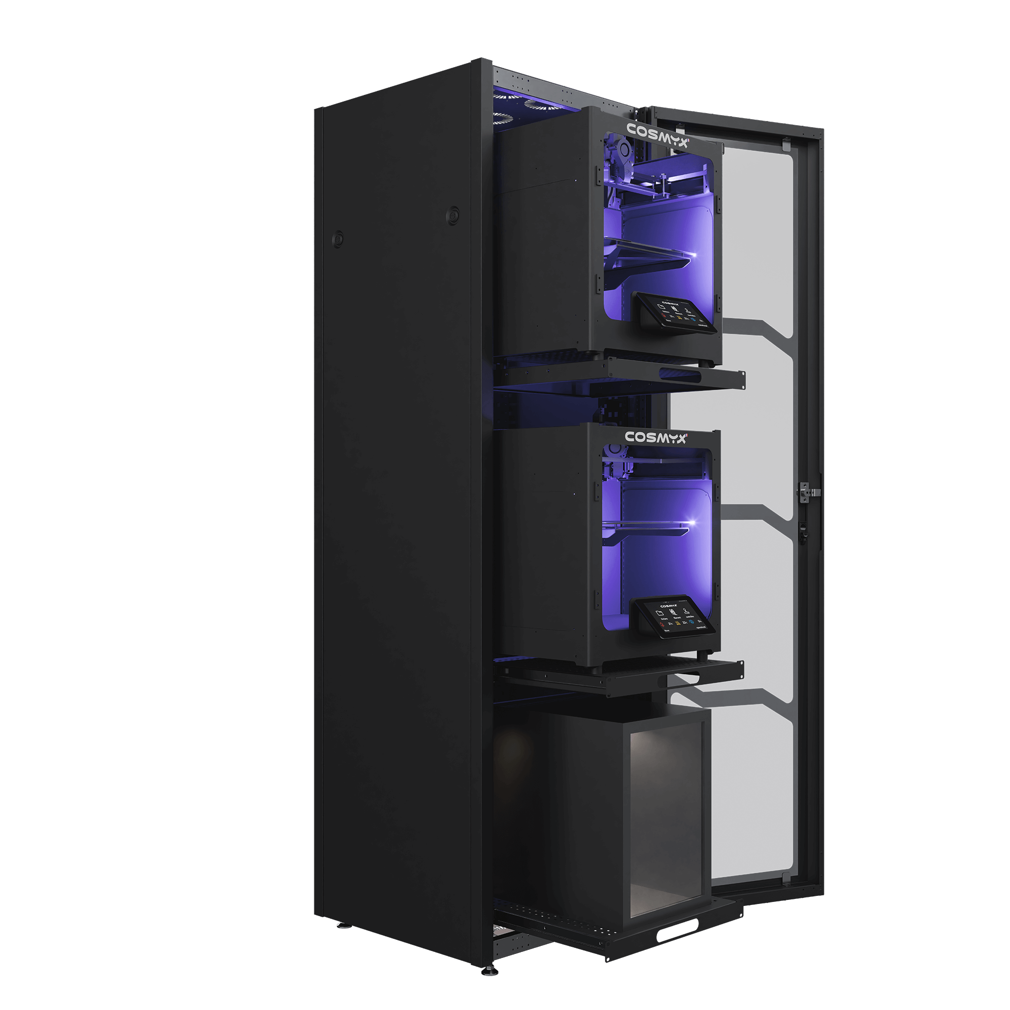 Elle intègre nos imprimantes 3D NOVA et SUPER NOVA, y compris notre solution DOUBLE-TÊTE. Elle offre également la possibilité de créer des espaces de déchargement, de stockage de matériaux et des outils de post-traitement.