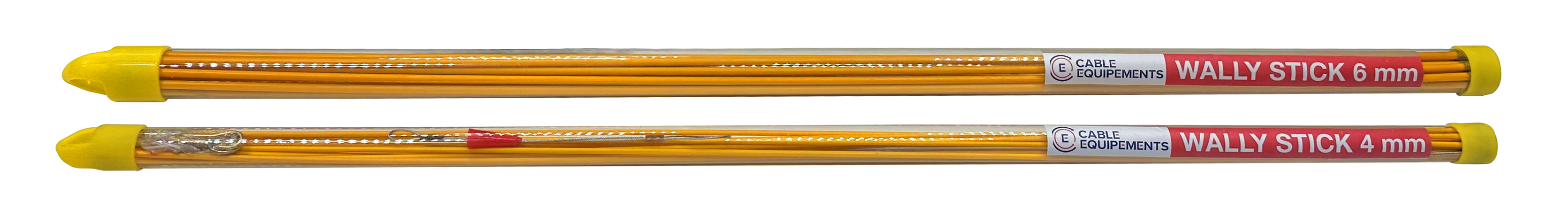 Baguettes de tirage en fibre de verre qui permettent de faire passer des câbles dans les murs creux, les cloisons, les faux plafonds, les caniveaux et les vides sanitaires.