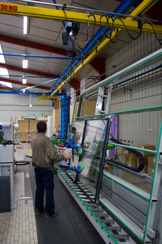 Conformément à la réglementation, ce matériel fabriqué en France est conçu suivant la directive machine 2006/42/CE. Il est livré avec un certificat CE et une notice de maintenance et d'utilisationpour alimenter une ligne de vitrage vertical. Ce palonnier à ventouses est généralement associé à une poutre roulante pour suivre le vitrage en entrée comme en sortie
