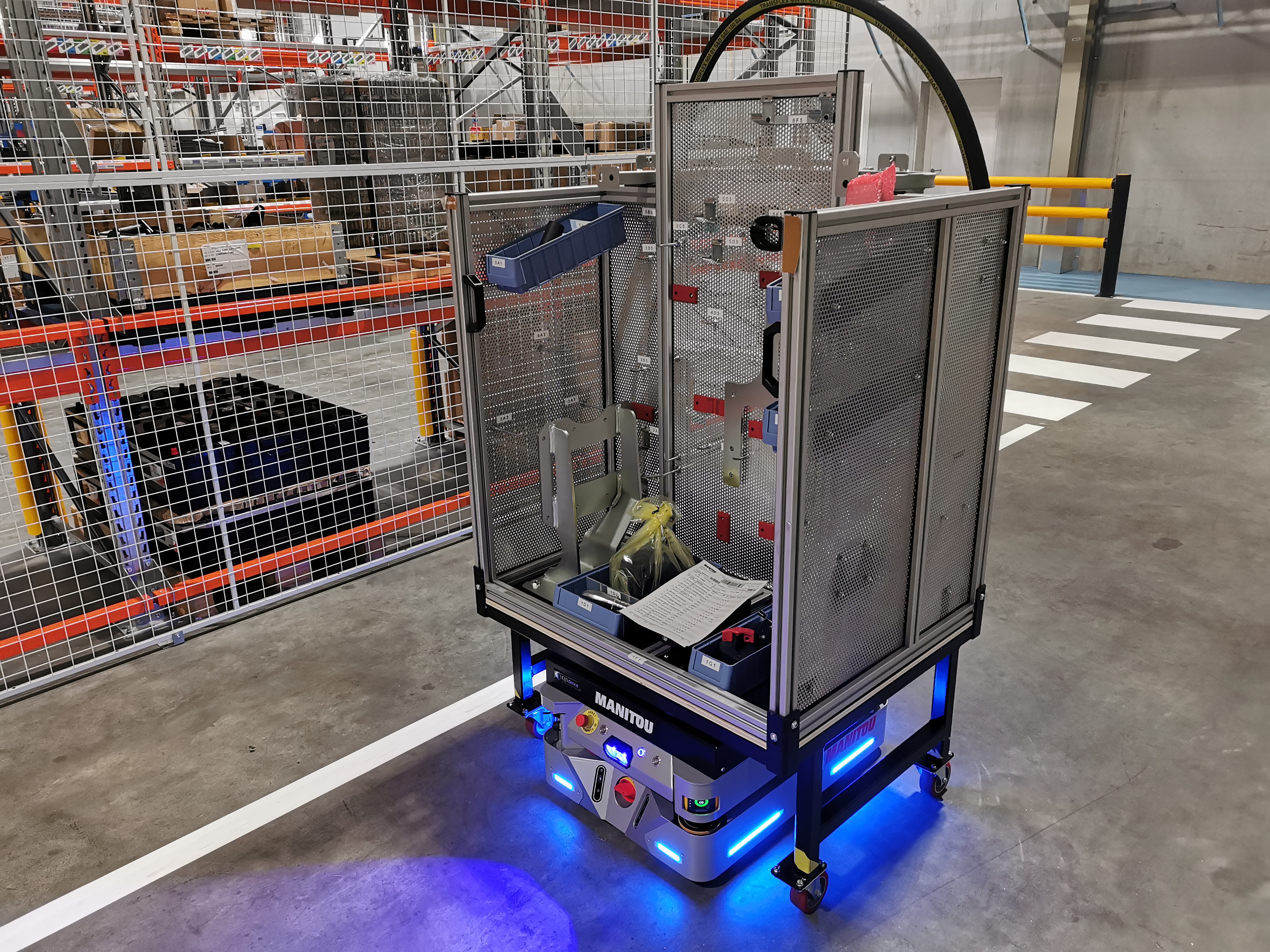 L’EffiBOT-XS est un AMR agile et compact capable de porter, d'agripper et de convoyer des charges jusqu'à 250 kg grâce à ses différents équipements. Tout comme l’EffiBOT, le mode follow-me est disponible sur cet AMR, en appuyant seulement sur le bouton de son pupitre. Pour toute autre application, le robot peut également transporter vos charges de manière totalement autonome et sécurisée.