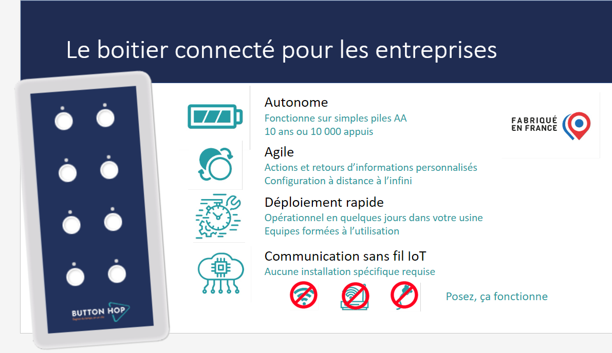 Notre boitier connecté est 100% autonome : Il fonctionne sur piles AA (durée 10 ans ou 10 000 appuis).