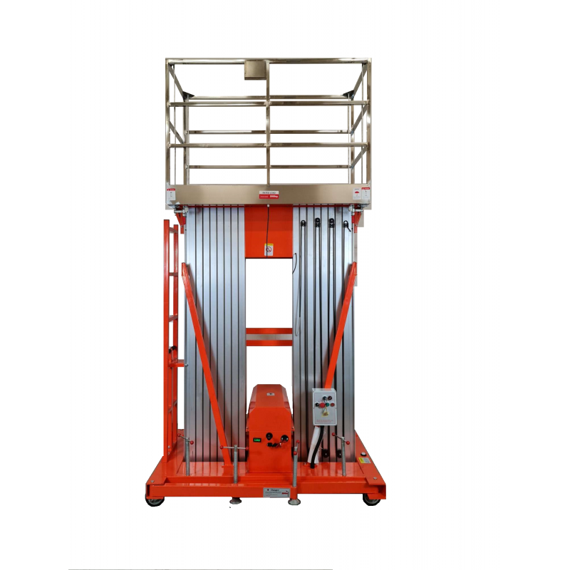 Une fois plié, cet élévateur est très compact et peut être placé de manière pratique n'importe où dans votre entrepôt sans occuper un espace précieux. La conception du mécanisme de levage de cet appareil se compose de mâts, les mâts à leur tour sortent les uns après les autres, en soulevant la plate-forme sur laquelle l'opérateur se tient. Selon la modification, cette plate-forme élévatrice comporte un à quatre mâts.