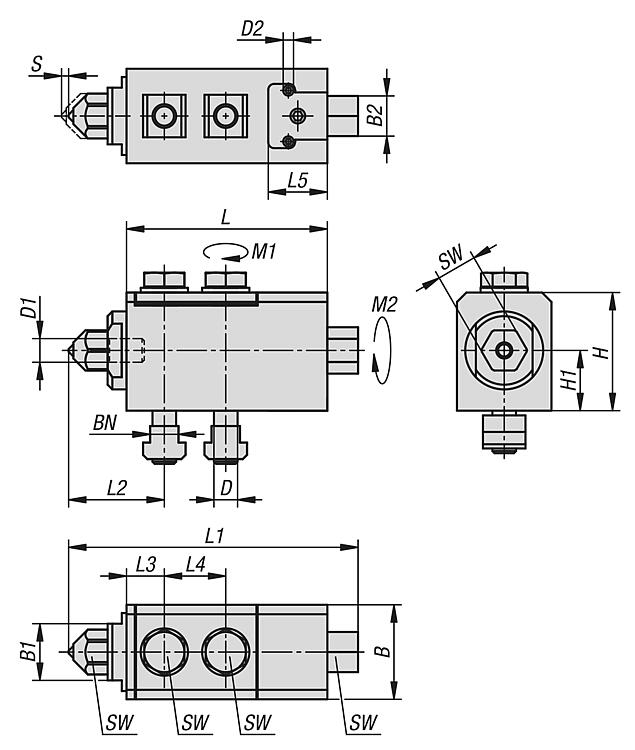 Les vis de fixation ISO 4014 (10.9) et les écrous pour rainures en T DIN 508 sont inclus.Avantages :- conception compacte