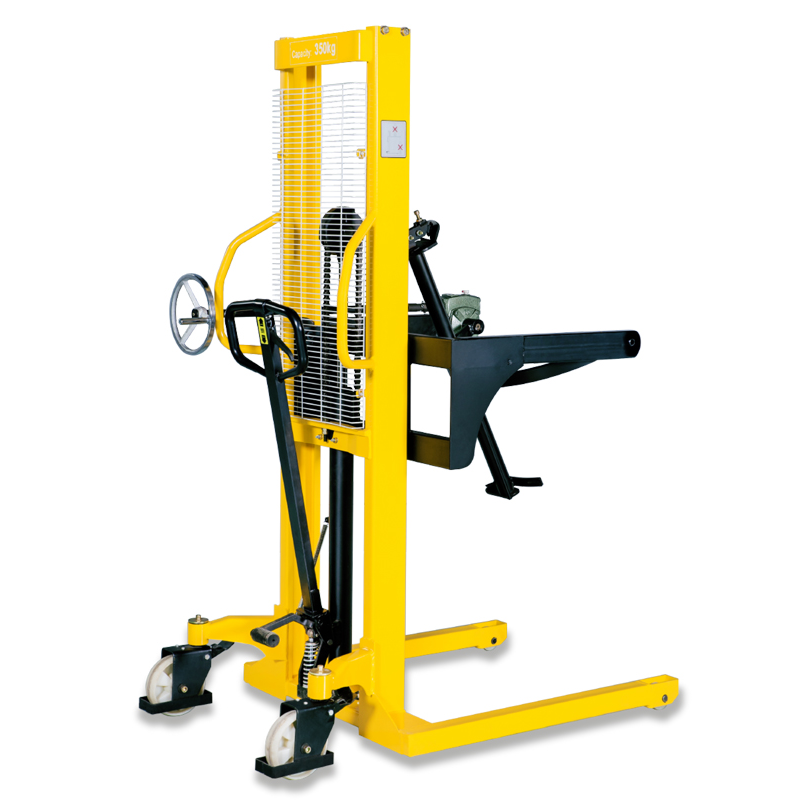 Gerbeur manuel TOR WDS 500-1600 - Gerbeur à fûts TOR WDS500-1600 — C'est un gerbeur spécial conçu pour le levage, le transport et le basculement de fûts. Le modèle est équipé d'un support de fûts fiable et d'une boîte de vitesses manuelle à vis sans fin pour faire tourner le baril. Le gerbeur est facile à utiliser et à entretenir. Le poids maximum du baril est de 500 kg et la hauteur de levage peut atteindre 1,6 mètre.