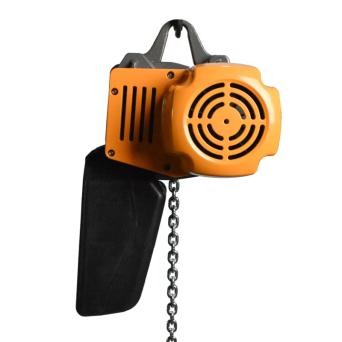 Palan électrique HHBDII pour un palan professionnel fonctionnel et moderne, marqué non pas d'une ligne pour l'équipement, mais d'une chaîne de levage en acier. Le modèle est alimenté en 230 V.