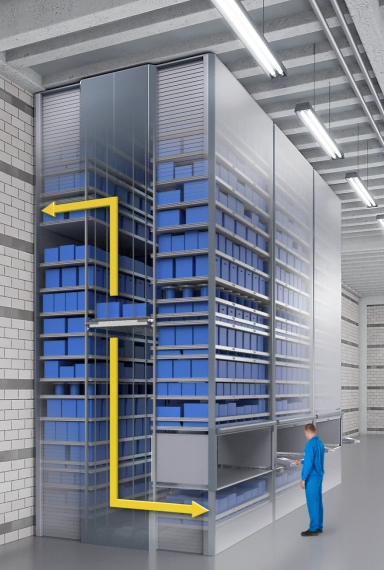 Comme un rayonnage vertical ou un magasin automatique de petites pièces, le Hänel Lean-Lift® exploite les hauteurs disponibles dans les locaux. En plus, il stocke les pièces en minimisant les pertes d’espace dans le sens de la hauteur. Il procure ainsi une capacité de stockage maximale pour un encombrement au sol minimal. Cela réduit les coûts et aide à exploiter la surface bâtie de manière plus économique.