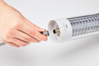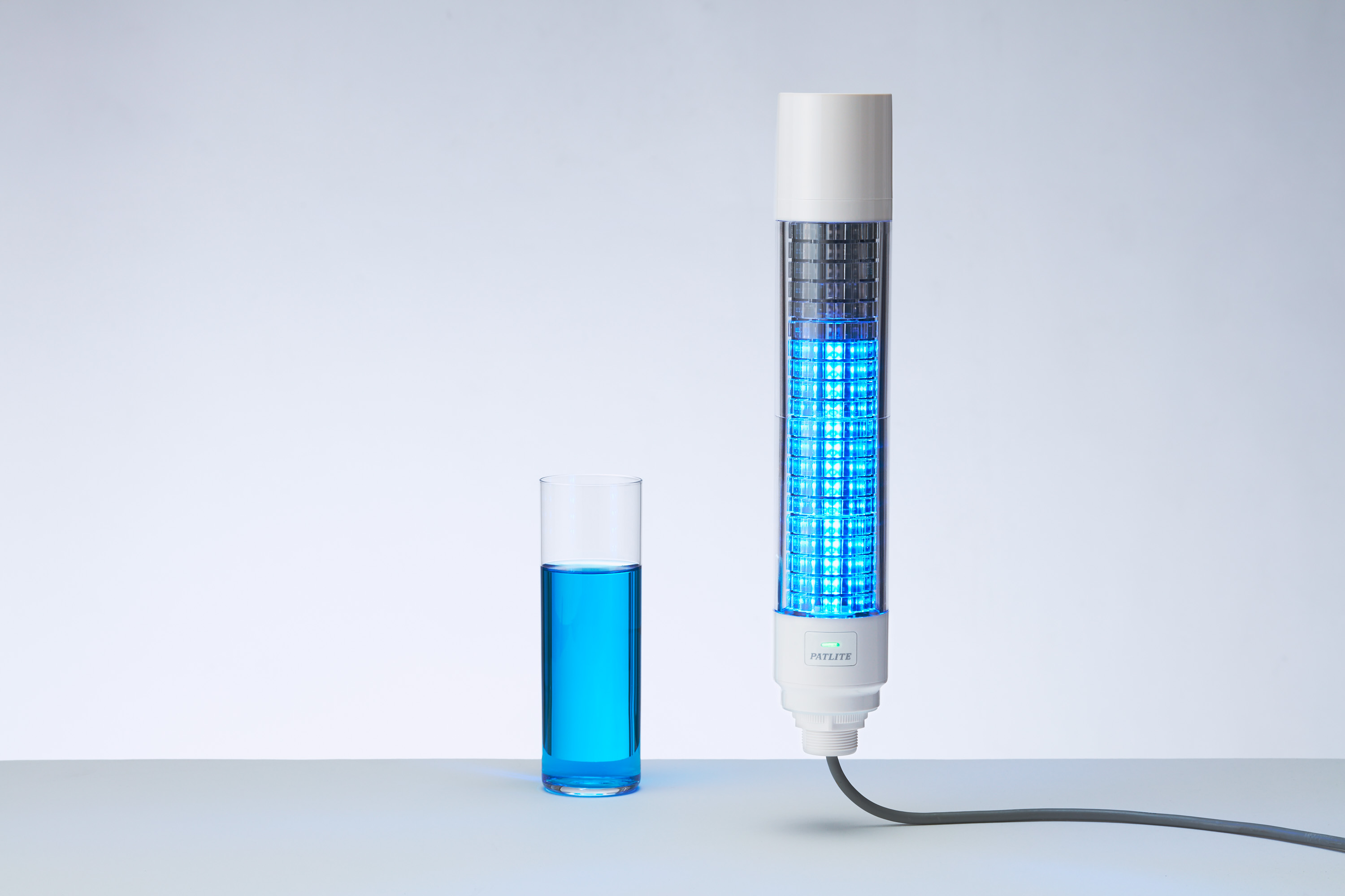 Colonne lumineuse IO-Link avec 20 étages lumineux pouvant prendre jusqu'à 21 couleurs.