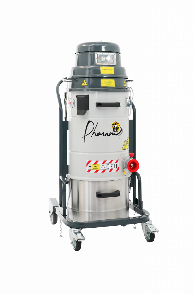 L'aspirateur industriel MTL 201 1/3D de Pharaon est un appareil de nettoyage professionnel haute performance conçu pour les environnements industriels exigeants. Cet aspirateur monophasé offre une puissance de 1100 W et une dépression de 2400 mm H2O, assurant une aspiration efficace des poussières fines et des débris.Son système de filtration avancé comprend un filtre antistatique de classe M et un filtre HEPA H14, garantissant une excellente qualité de l'air et la sécurité des opérateurs. Le dispositif de décolmatage semi-automatique DUSTOP maintient les performances d'aspiration et prolonge la durée de vie des filtres.Construit avec un châssis en acier robuste et des roues industrielles, le MTL 201 1/3D est à la fois durable et maniable. Sa cuve en acier inoxydable AISI304 facilite le nettoyage et la collecte des déchets. Un vacuomètre intégré permet de surveiller l'état du filtre en temps réel.Cet aspirateur est particulièrement adapté aux industries telles que l'aéronautique, l'agroalimentaire et la pharmacie, où le contrôle des poussières est crucial. Il est également certifié pour une utilisation dans les zones ATEX 20 interne et 22 externe, le rendant approprié pour l'aspiration de poussières potentiellement explosive.