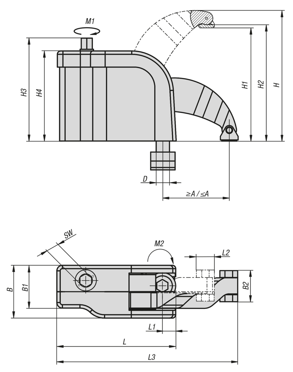 L'actionnement de la vis de réglage permet de régler le bras de serrage en hauteur