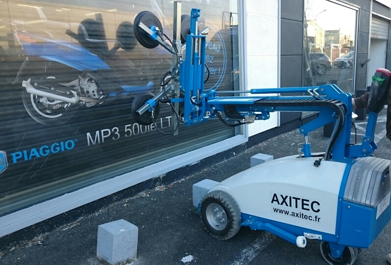 Votre nouvel allié pour poser vitrines et fenêtres en rez-de-chaussée et galerie commerciale. Présentée en avant-première lors du salon Equip'Baie, la mini-grue à ventouses est le fruit d'une étroite collaboration entre AXITEC, spécialiste de la manutention par le vide, et MOBILEV, fabricant de mini-grue. Cet équipement complet, mobile et modulable, permet de poser en intérieur comme en extérieur vitrines et menuiseries jusqu'à 350 kg. Premier équipement de ce type de fabrication française, cet appareil auto-porté offre une capacité de levage de 350 kg et permet la pose en façade ou par le dessous. Compact, il peut passer par une porte standard et il bénéficie de série d’une translation motorisée. Sa montée-descente intégrée, ses mouvements de rotation manuelle et de basculement motorisé en font l’allié idéal des poseurs.