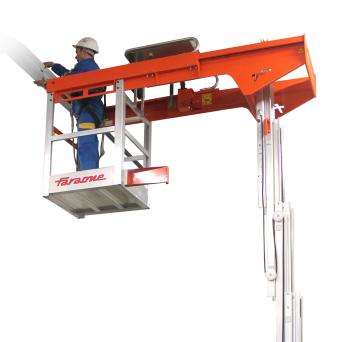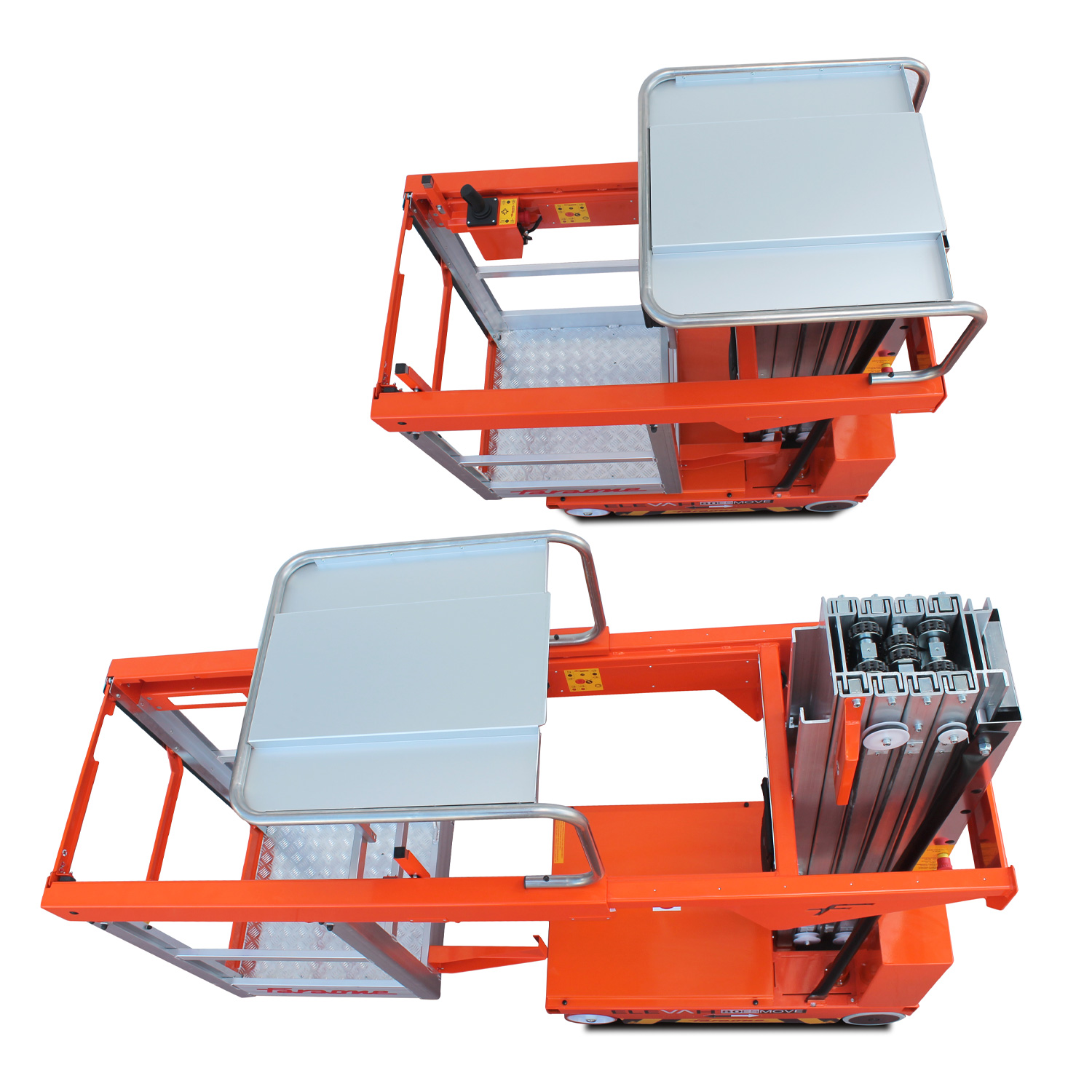Plate-forme automotrice avec élévateur électrique et panier extensible manuellement de 115 cm pour les travaux d'entretien et de réparation.