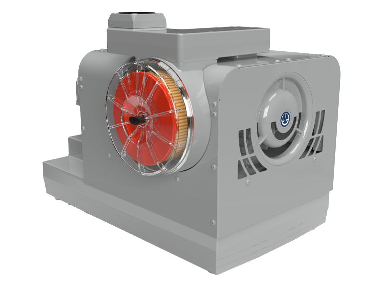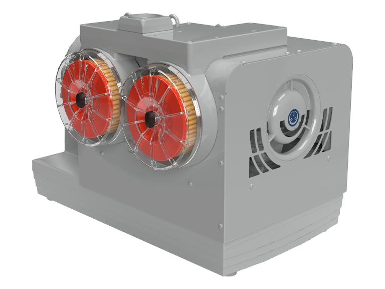 Les pompes à vide à becs de chez Becker utilisent un principe de fonctionnement à déplacement positif, semblable aux pompes à palettes rotatives. Les pompes à becs sont 100% exemptes d’huile et de contact pendant le fonctionnement. Pour ce faire, deux rotors semblables à des becs tournent dans une chambre de compression. Ils tournent dans des directions opposées sans se toucher ni l’un l’autre ni la chambre.